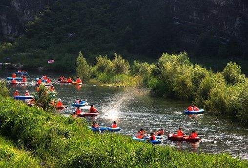 隨后大家在購(gòu)好票穿戴好裝備后開始了期待已久的漂流。大家都很活躍,心情格外好。在漂流谷中,皮艇時(shí)而飛快時(shí)而緩慢,當(dāng)皮艇飛快地穿梭在群山環(huán)繞的漂流河中,“兩岸猿聲啼不住 輕舟已過萬(wàn)重山”的感覺油然而生。在蜿蜒曲折的河流中,兩岸忽而懸岸陡壁,如過山車;在驚險(xiǎn)的狂叫中釋放了日常工作生活的壓力,兩個(gè)人自然的配合形成了最好的合力。這一刻,大家忘記了一切的煩惱憂愁,盡情的享受大自然給予的洗禮。