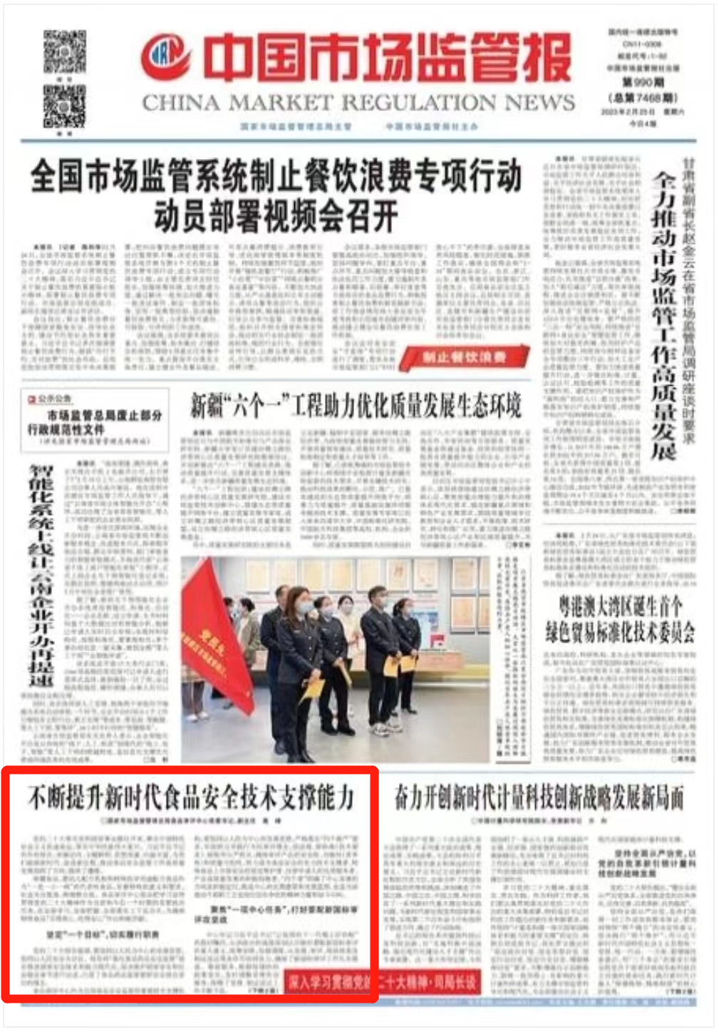 《中國市場監(jiān)管報》2023年2月25日第990期,刊登了食品審評中心黨委書記、主任高峰同志文章《不斷提升新時代食品安全技術(shù)支撐能力》,全文如下: