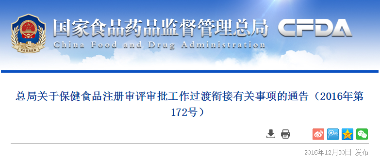2016年11月15日,國家食品藥品監(jiān)督管理總局印發(fā)了《保健食品注冊(cè)審評(píng)審批工作細(xì)則(2016版)》(以下簡稱《細(xì)則》),明確了保健食品注冊(cè)審評(píng)審批的工作程序和要求。為保證保健食品注冊(cè)審評(píng)審批工作平穩(wěn)有序開展,現(xiàn)就《細(xì)則》實(shí)施前已受理注冊(cè)申請(qǐng)的審評(píng)審批事項(xiàng)通告如下: