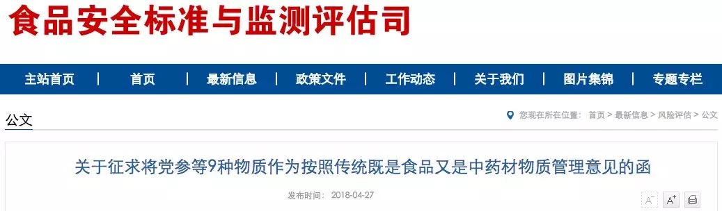 為進(jìn)一步做好按照傳統(tǒng)既是食品又是中藥材物質(zhì)(以下簡(jiǎn)稱食藥物質(zhì))管理工作,按照《食品安全法》規(guī)定,我委正會(huì)同有關(guān)部門(mén)和單位研究調(diào)整食藥物質(zhì)目錄,擬在前期工作基礎(chǔ)上,再增補(bǔ)一批物質(zhì)。本輪增補(bǔ)主要結(jié)合我國(guó)傳統(tǒng)飲食習(xí)慣,綜合考慮地方需求,同時(shí)參考相關(guān)國(guó)際管理經(jīng)驗(yàn),擬將黨參、肉蓯蓉、鐵皮石斛、西洋參、黃芪、靈芝、天麻、山茱萸、杜仲葉等9種物質(zhì)按照食藥物質(zhì)管理(附件)。