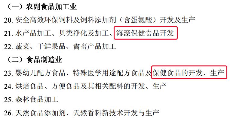 據(jù)了解,國家鼓勵(lì)外商投資的產(chǎn)業(yè)目錄領(lǐng)域包含“海藻保健食品開發(fā)”以及“保健食品的開發(fā)、生產(chǎn)”。