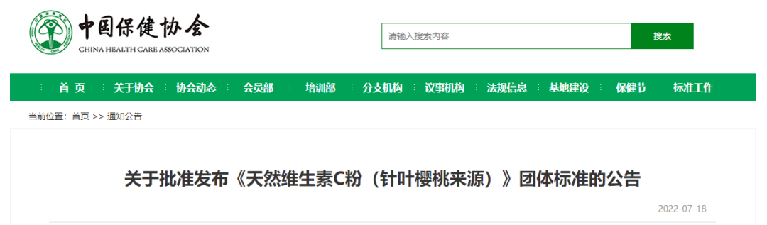 根據(jù)《中國保健協(xié)會(huì)團(tuán)體標(biāo)準(zhǔn)管理辦法(試行)》相關(guān)規(guī)定,《天然維生素C粉(針葉櫻桃來源)》團(tuán)體標(biāo)準(zhǔn)經(jīng)立項(xiàng)、起草、征求意見、審查等標(biāo)準(zhǔn)制訂程序,并通過中國保健協(xié)會(huì)批準(zhǔn),現(xiàn)予以發(fā)布。
