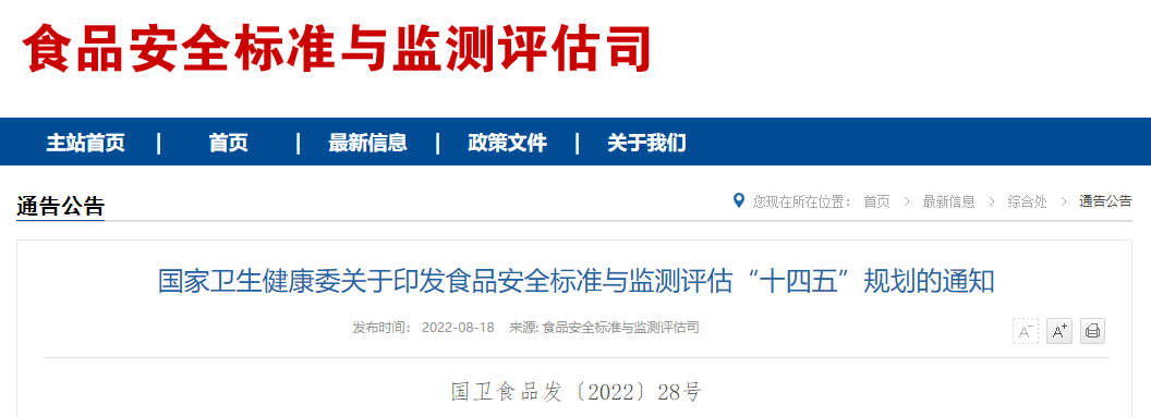 食品安全標準與監(jiān)測評估“十四五”規(guī)劃