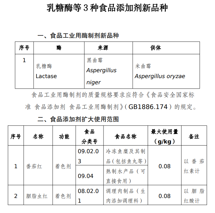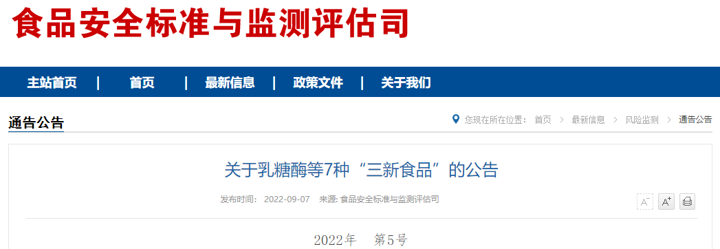解讀《關(guān)于乳糖酶等7種“三新食品”的公告》(2022年第5號)