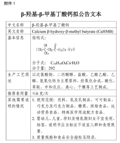 新食品原料β-羥基-β-甲基丁酸鈣公開征求意見