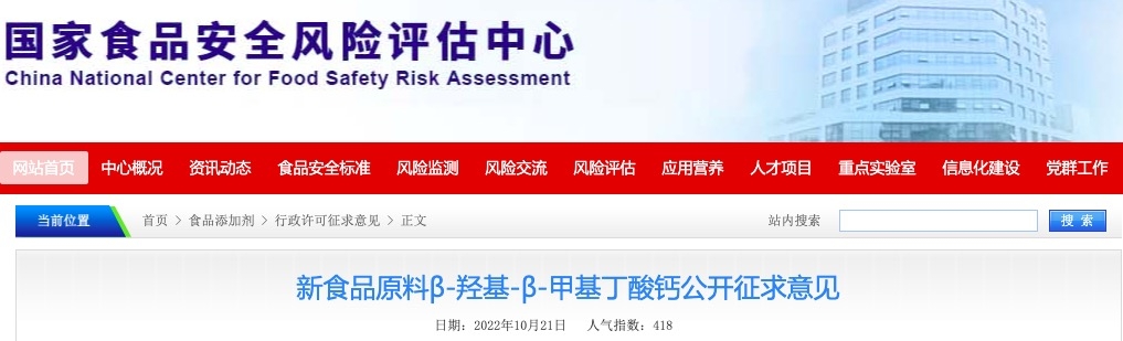國家衛(wèi)生健康委員會委托,根據《食品安全法》和《新食品原料安全性審查管理辦法》的規(guī)定,β-羥基-β-甲基丁酸鈣申報新食品原料已通過專家評審委員會技術審查,現公開征求意見,請于2022年11月21日前將意見反饋至我中心,逾期將不予處理。