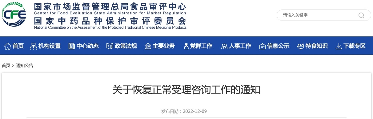 根據(jù)北京市疫情防控工作總體要求,自12月12日食審中心恢復(fù)現(xiàn)場(chǎng)受理工作及現(xiàn)場(chǎng)、電話咨詢工作?,F(xiàn)將有關(guān)事項(xiàng)通知如下: