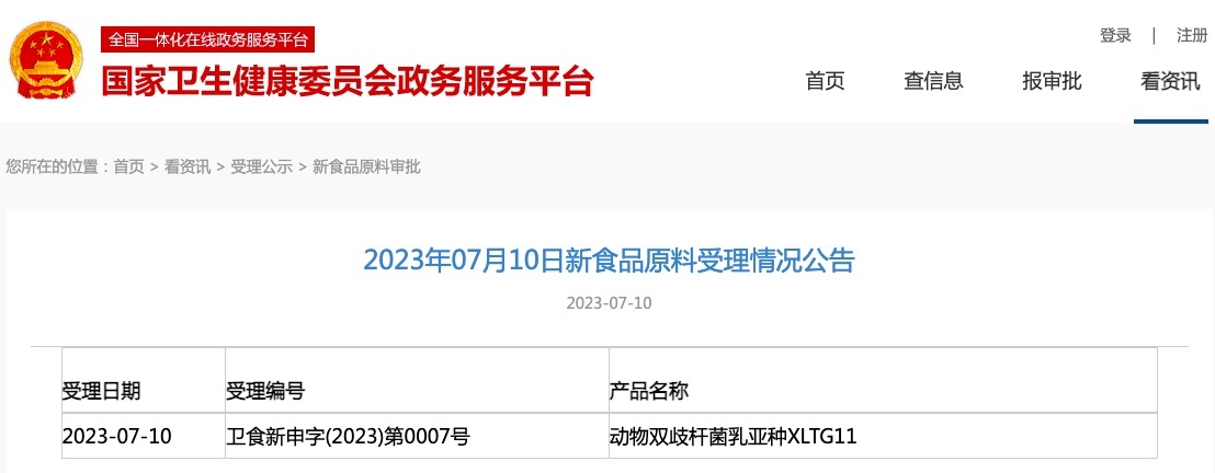 新食品原料 | 國家衛(wèi)健委發(fā)布動物雙歧桿菌乳亞種XLTG11受理公告