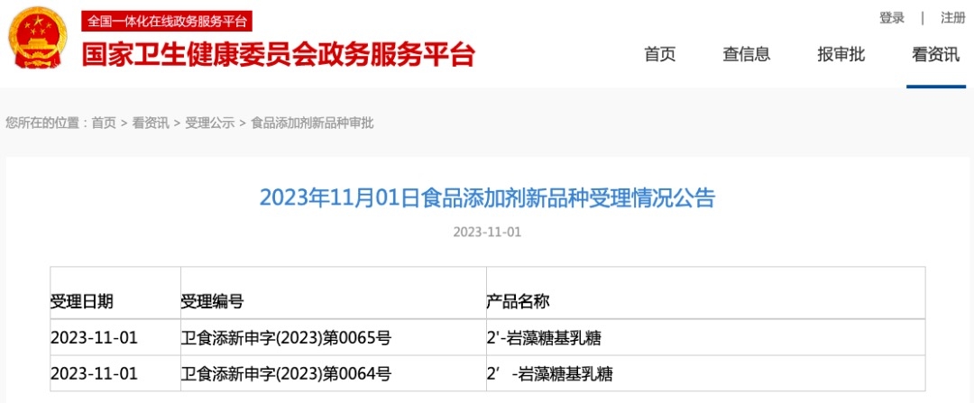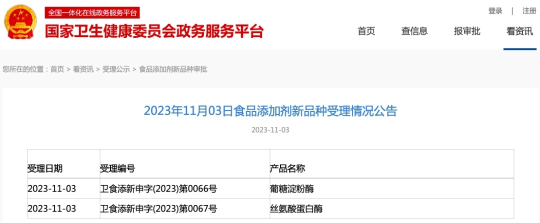 受理編號:衛(wèi)食添新申字(2023)第0064號、衛(wèi)食添新申字(2023)第0065號