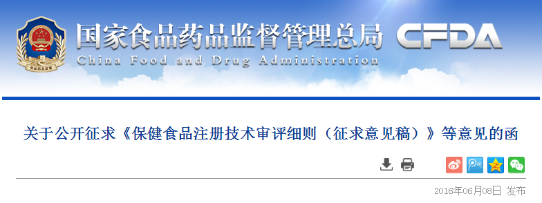 為規(guī)范保健食品注冊(cè)技術(shù)審評(píng)工作,落實(shí)《中華人民共和國(guó)食品安全法》和《保健食品注冊(cè)與備案管理辦法》等法律法規(guī)要求,食品藥品監(jiān)管總局組織起草了《保健食品注冊(cè)技術(shù)審評(píng)細(xì)則(征求意見(jiàn)稿)》及注冊(cè)申請(qǐng)材料要求和相關(guān)證書(shū)文本格式(見(jiàn)附件),現(xiàn)公開(kāi)征求意見(jiàn),請(qǐng)于2016年6月17日前按照意見(jiàn)反饋模板提出修改意見(jiàn)并以電子郵件形式反饋我局。