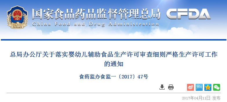 關于落實嬰幼兒輔助食品生產(chǎn)許可審查細則嚴格生產(chǎn)許可工作的通知
