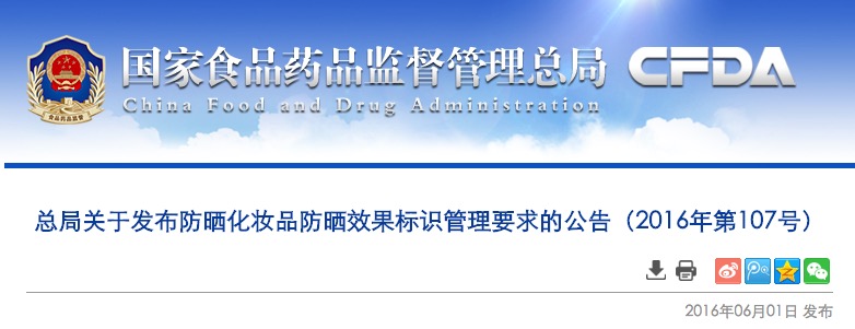 總局關于發(fā)布防曬化妝品防曬效果標識管理要求的公告(2016年第107號)