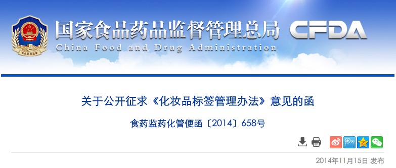附件:1.《化妝品標(biāo)簽管理辦法》(征求意見稿) 2.《化妝品標(biāo)簽管理辦法》(征求意見稿)起草說(shuō)明