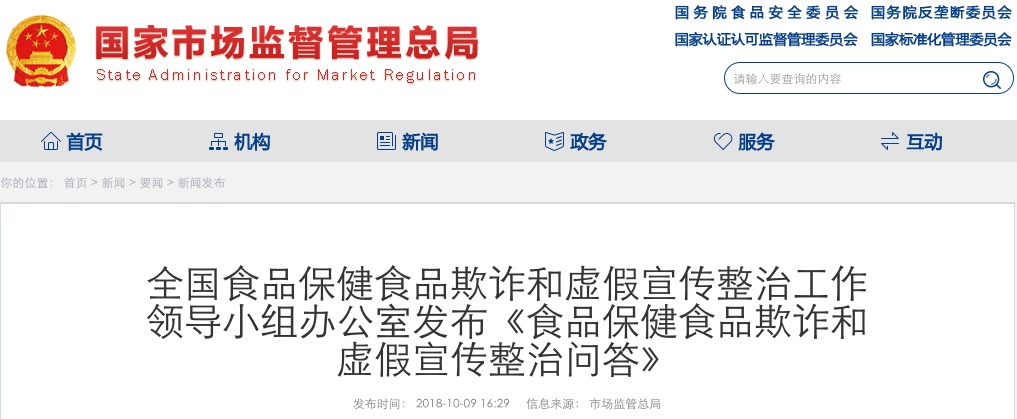 全國食品保健食品欺詐和虛假宣傳整治工作 領導小組辦公室發(fā)布《食品保健食品欺詐和 虛假宣傳整治問答》