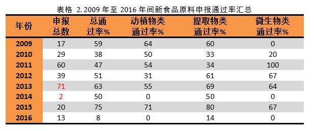 新食品原料申報(bào)總數(shù)和通過率
