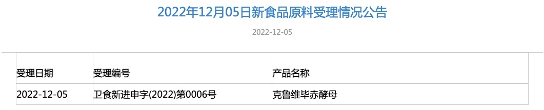 國家衛(wèi)健委發(fā)布克魯維畢赤酵母新食品原料受理公告